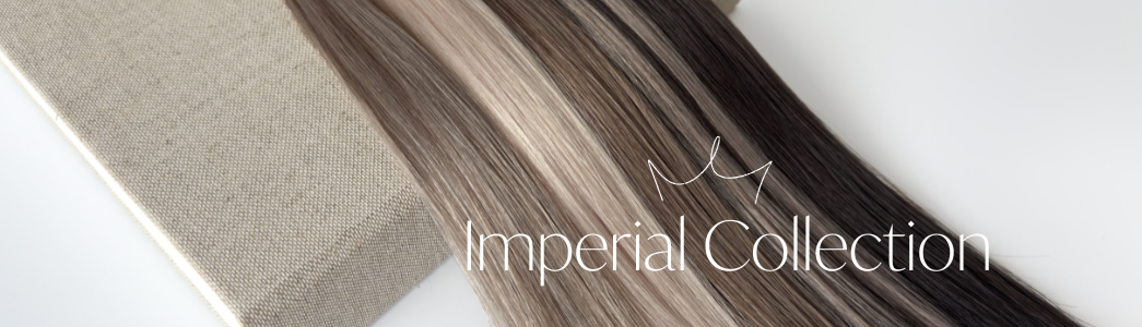 Die Imperial Collection ist unsere neueste Linie aus mongolischem Haar mit außergewöhnlicher Qualität, einer seidig-weichen Textur und natürlichem Glanz, die kaum zum Verknoten neigt. Diese luxuriöse Kollektion wurde rund um die neuesten Farbtrends mit kühlen, matten Untertönen kuratiert – von Eisblond bis zu tiefem Aschbraun. Alle Nuancen sind neu und mit einem IM-Farbnamen und -Code gekennzeichnet.